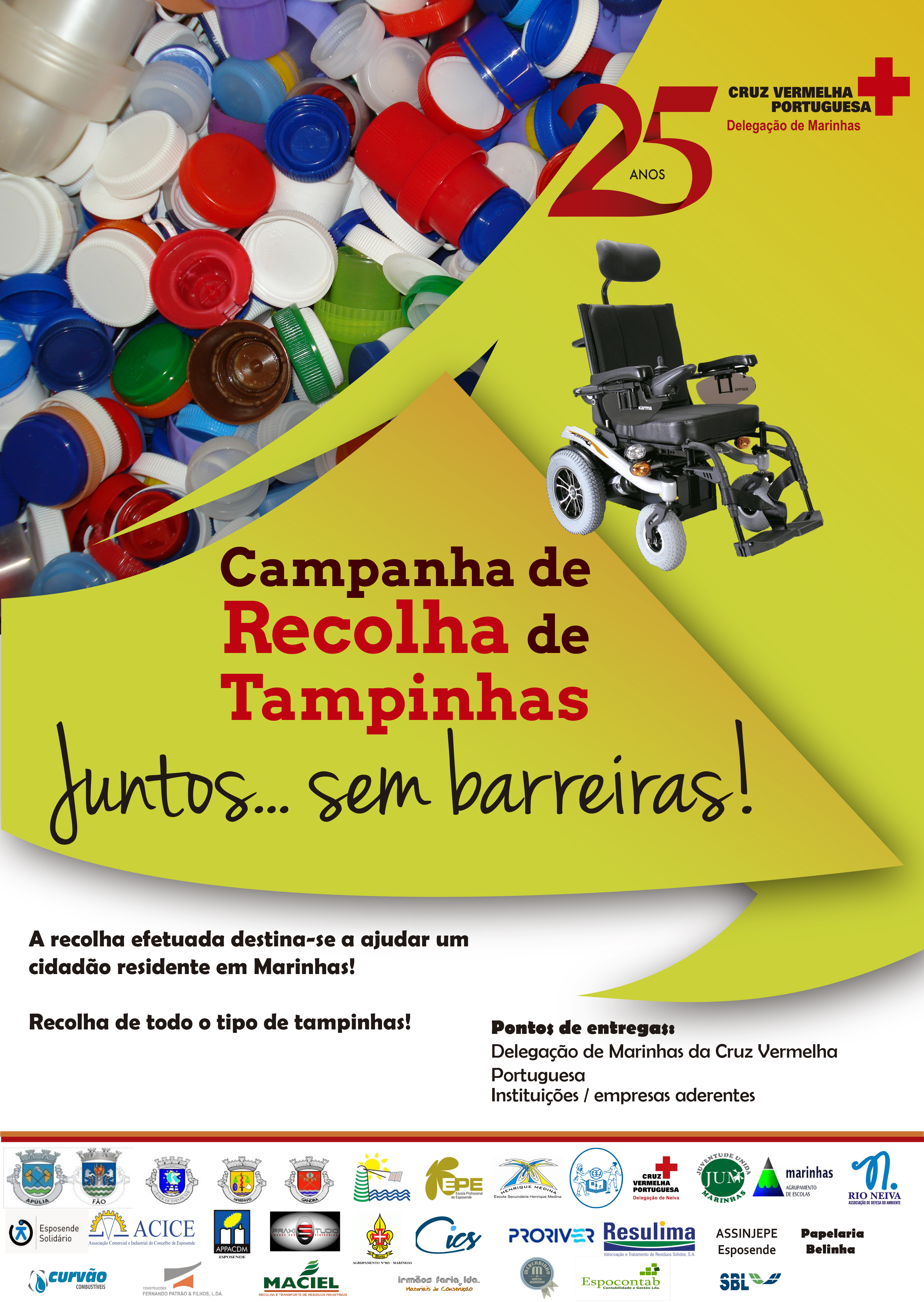 No âmbito da sua política social, a Associação de Funcionários da Câmara Municipal de Esposende decidiu associar-se à Campanha de Recolha de Tampinhas “Juntos… Sem Barreiras!” da Delegação de Marinhas da Cruz Vermelha Portuguesa, para a aquisição de uma cadeira de rodas elétrica, que destina-se ao cônjuge de uma colega nossa.